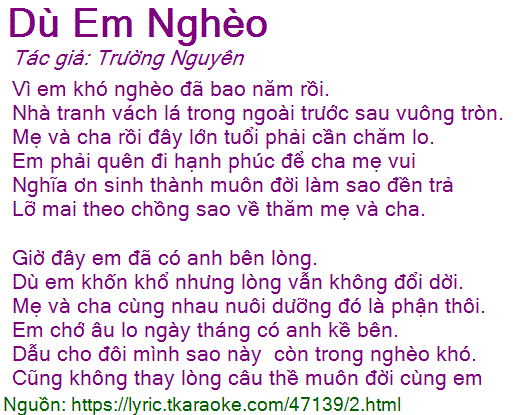 Dù em khốn khổ nhưng lòng vẫn không đổi dời.