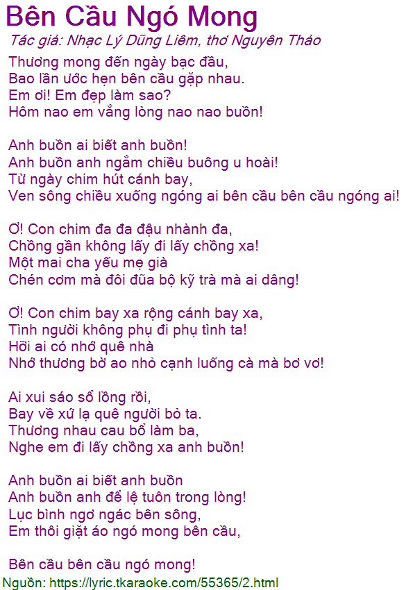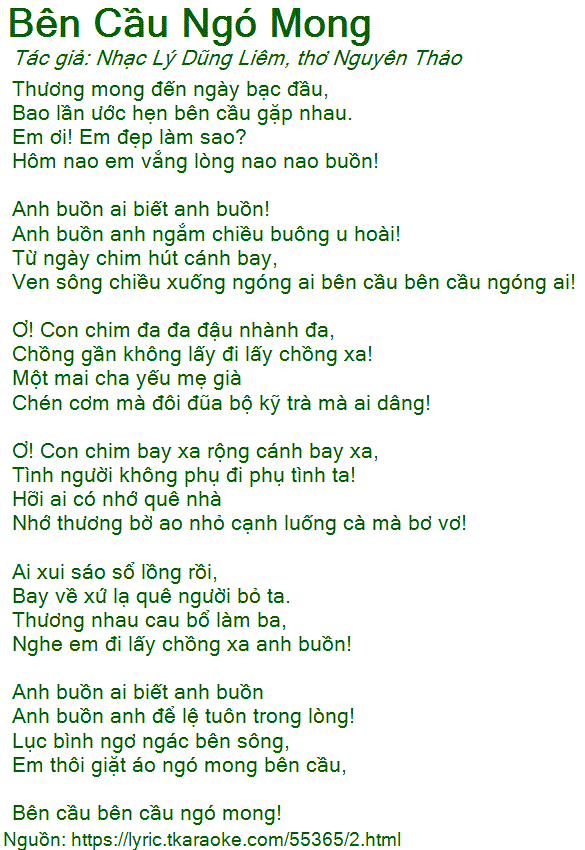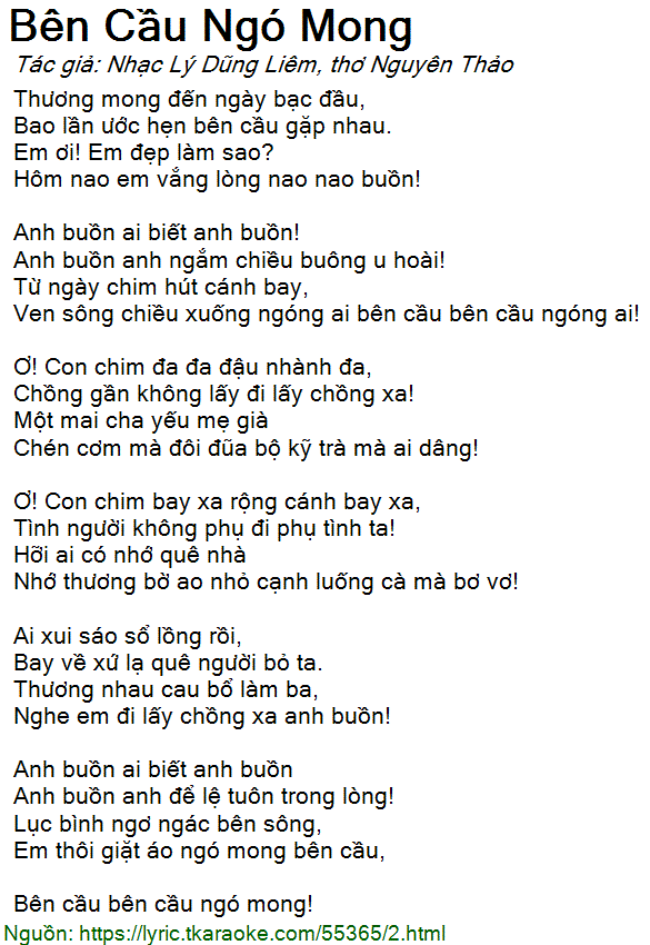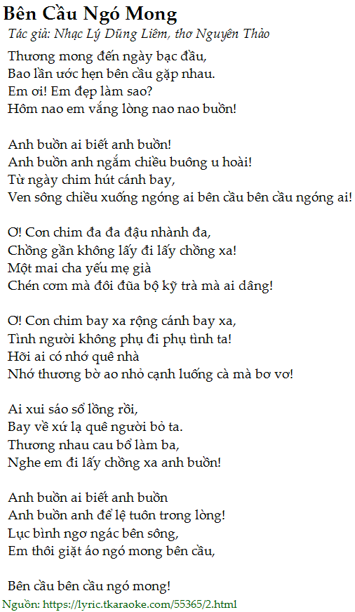 Ven sông chiều xuống ngóng ai bên cầu bên cầu ngóng ai!