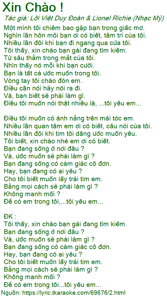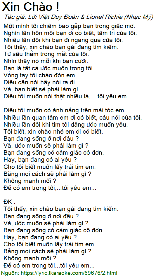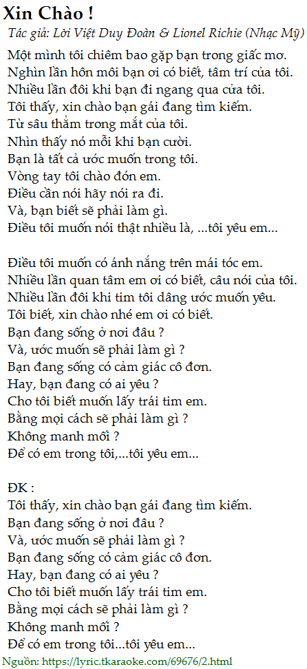 Tôi biết, xin chào nhé em ơi có biết.