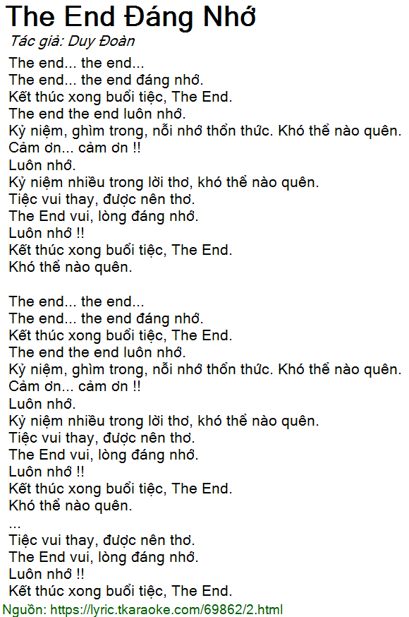 The end the end luôn nhớ.