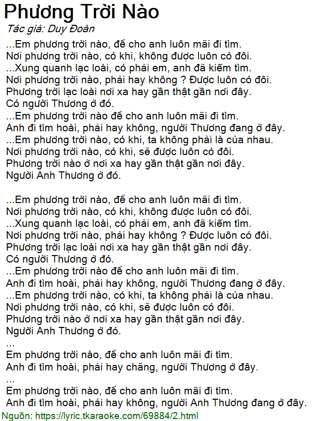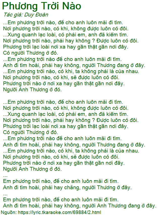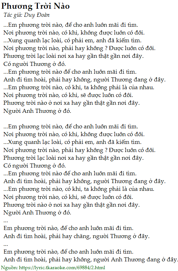 ........ Em phương trời nào, để cho anh luôn mãi đi tìm.