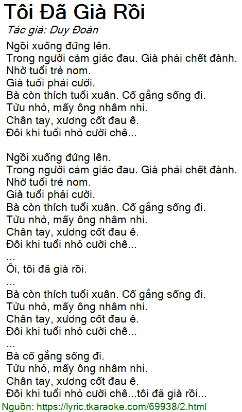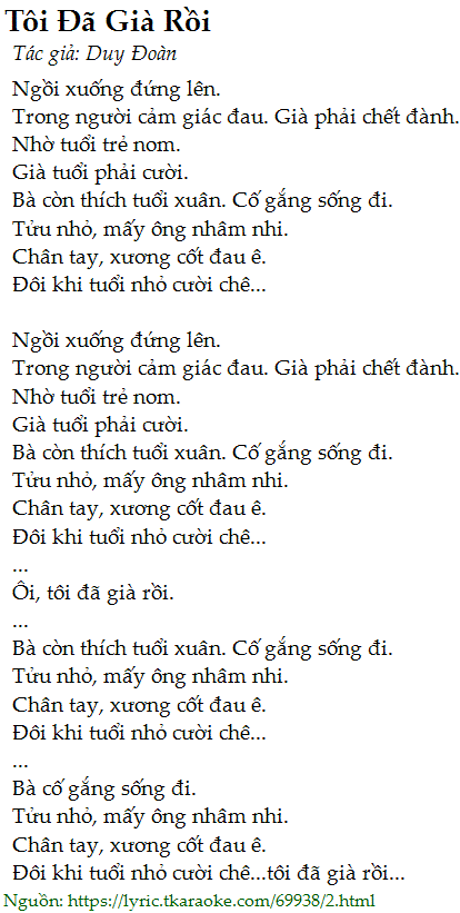 Đôi khi tuổi nhỏ cười chê......tôi đã già rồi........