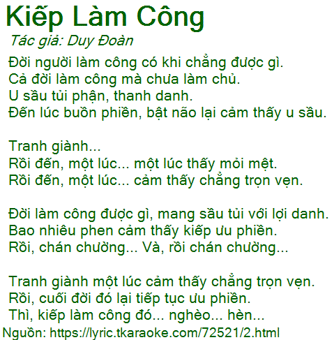 Thì, kiếp làm công đó ........ nghèo ........ hèn ........