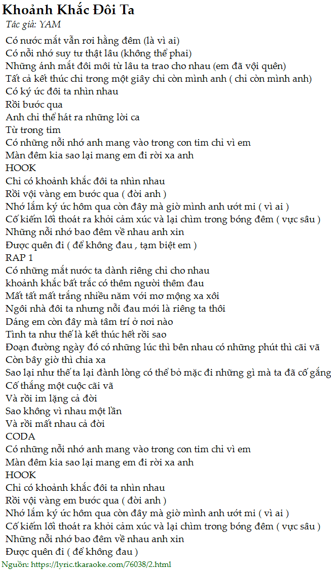 Nhớ lắm ký ức hôm qua còn đây mà giờ mình anh ướt mi ( vì ai )