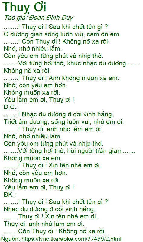 ........! Còn Thuỵ ơi ! Không nỡ xa rời.