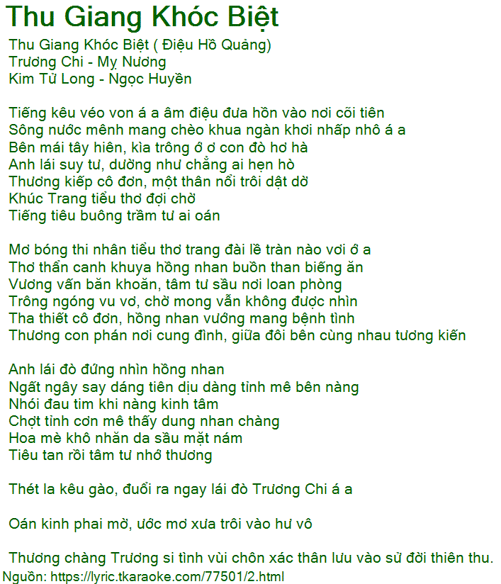 Thu Giang Khóc Biệt ( Điệu Hồ Quảng)