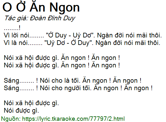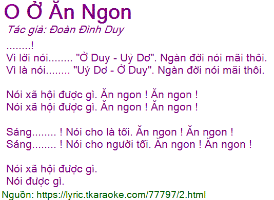 Vì lời nói........ "Ở Duy - Uỷ Dơ". Ngàn đời nói mãi thôi.