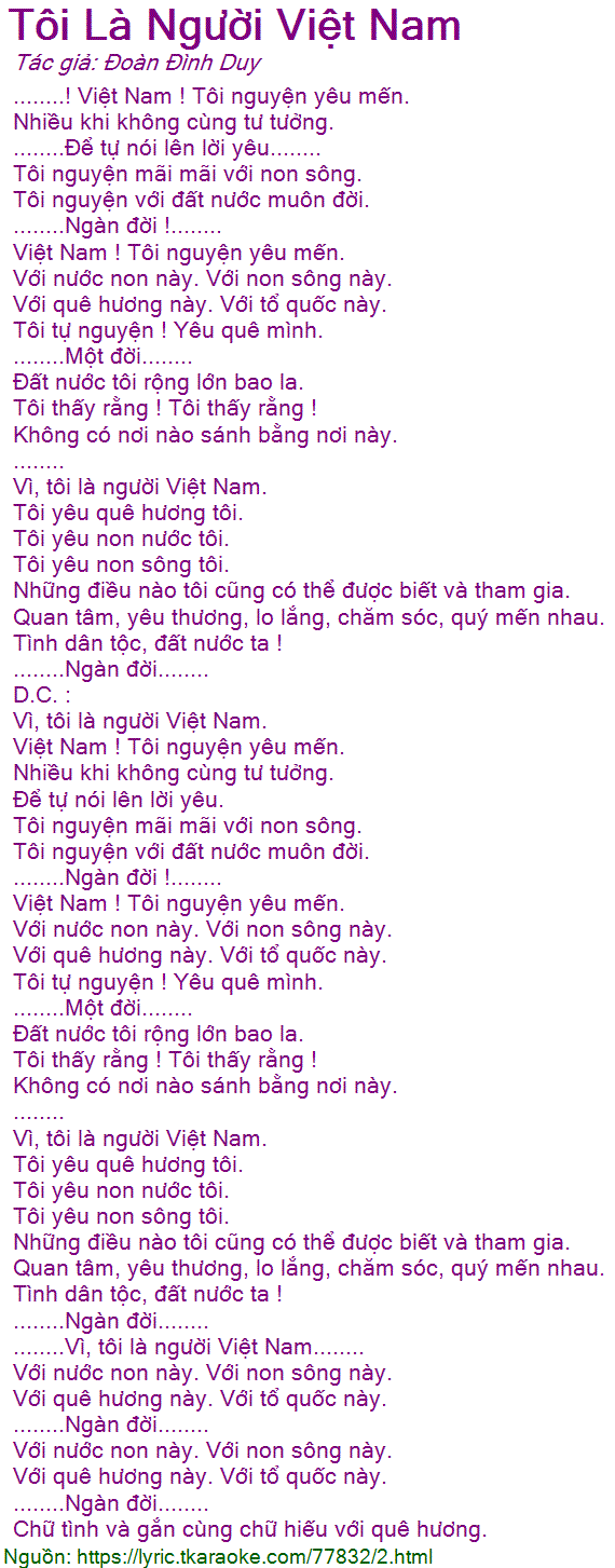 ........! Việt Nam ! Tôi nguyện yêu mến.