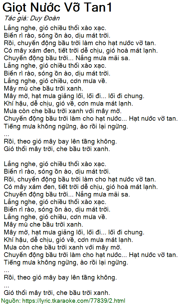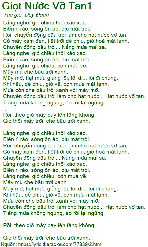 Chuyển động bầu trời làm cho hạt nước........ Hạt nước vỡ tan.