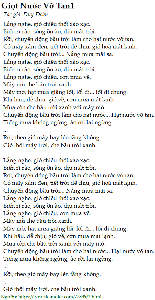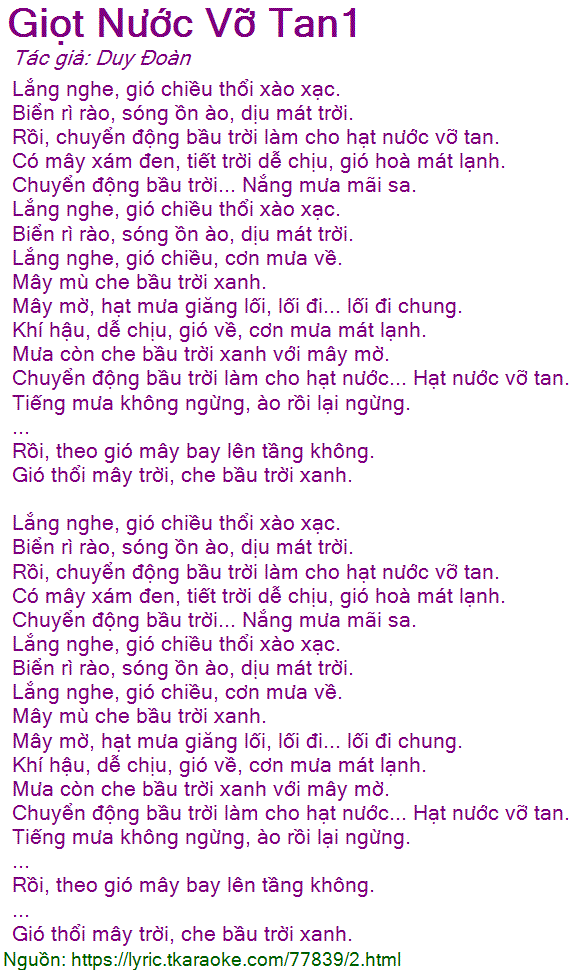 Rồi, chuyển động bầu trời làm cho hạt nước vỡ tan.