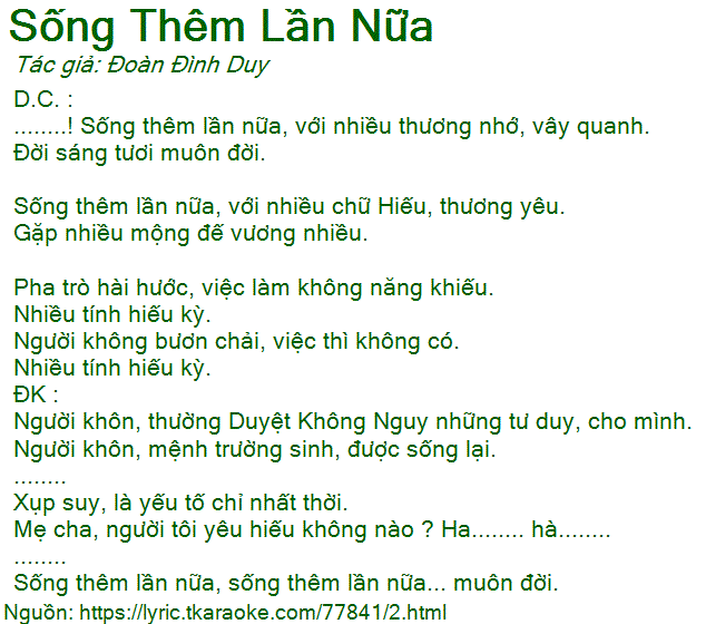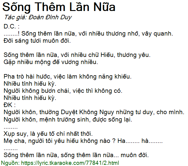 ........! Sống thêm lần nữa, với nhiều thương nhớ, vây quanh.