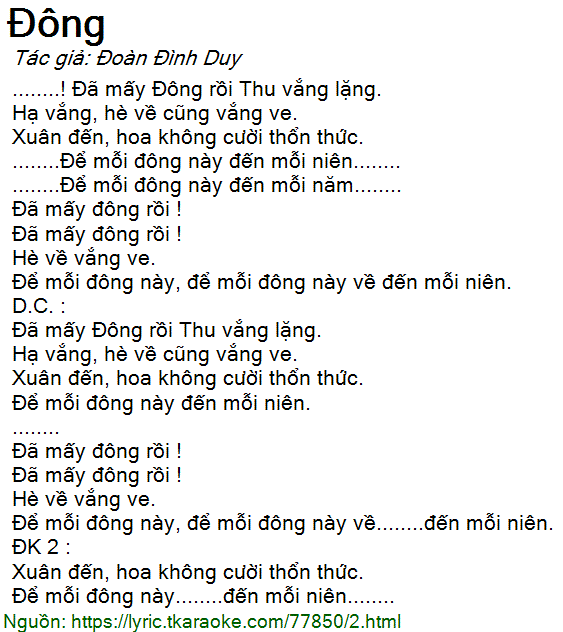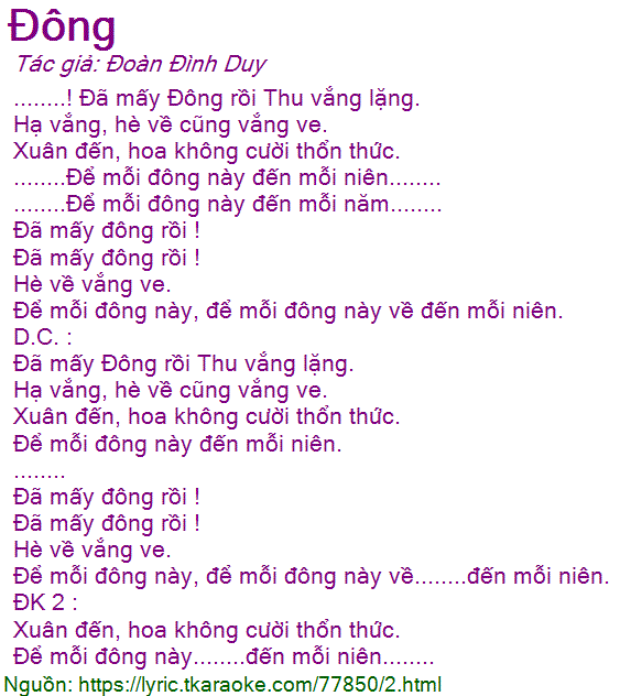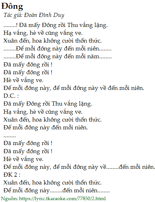 ........! Đã mấy Đông rồi Thu vắng lặng.