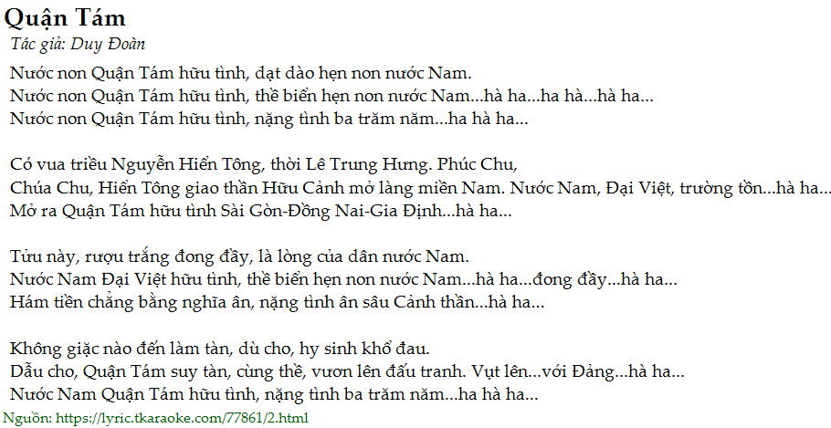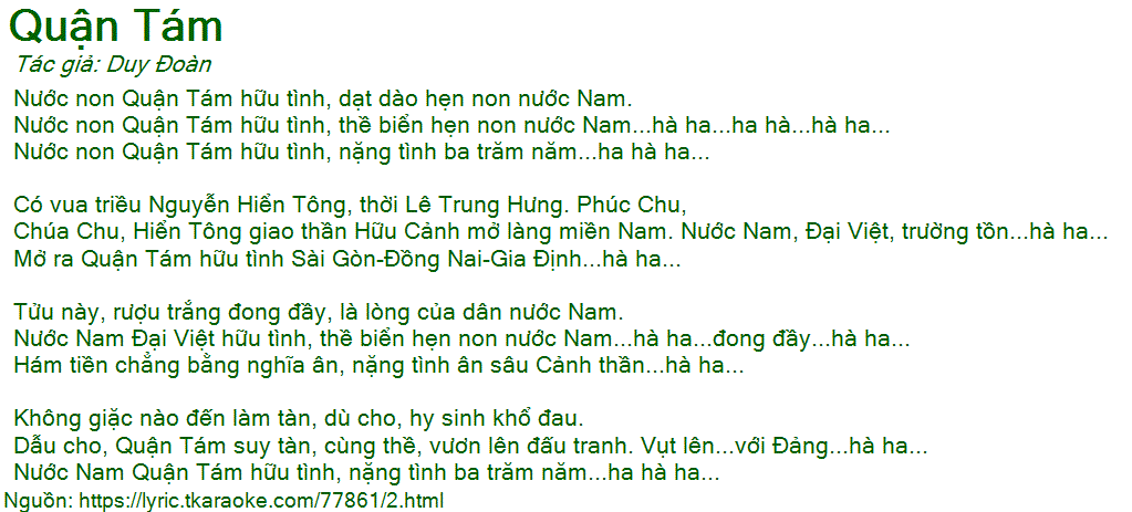 Nước Nam Đại Việt hữu tình, thề biển hẹn non nước Nam........hà ha........đong đầy........hà ha........