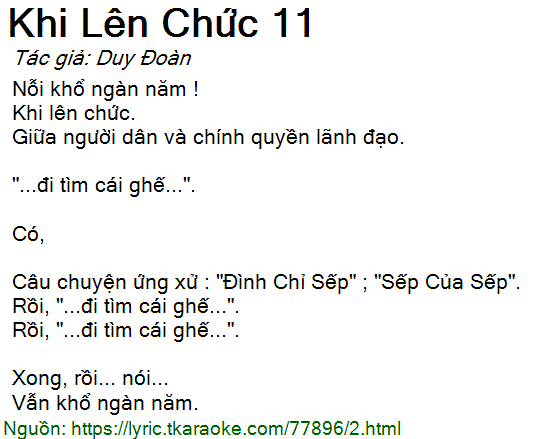 Quyền chức cao. Người đảng nào. Chẳng biết lo.