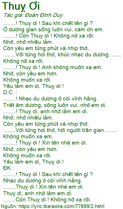 ........! Còn Thuỵ ơi ! Không nỡ xa rời.