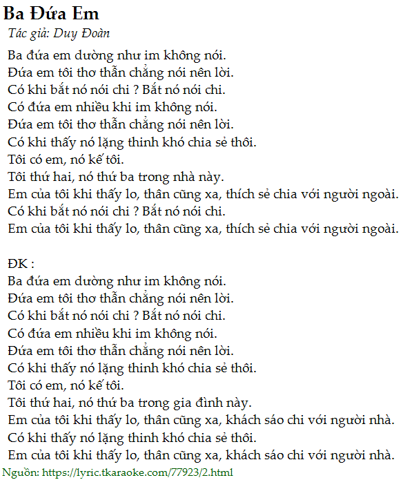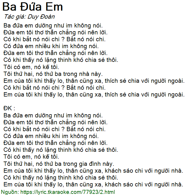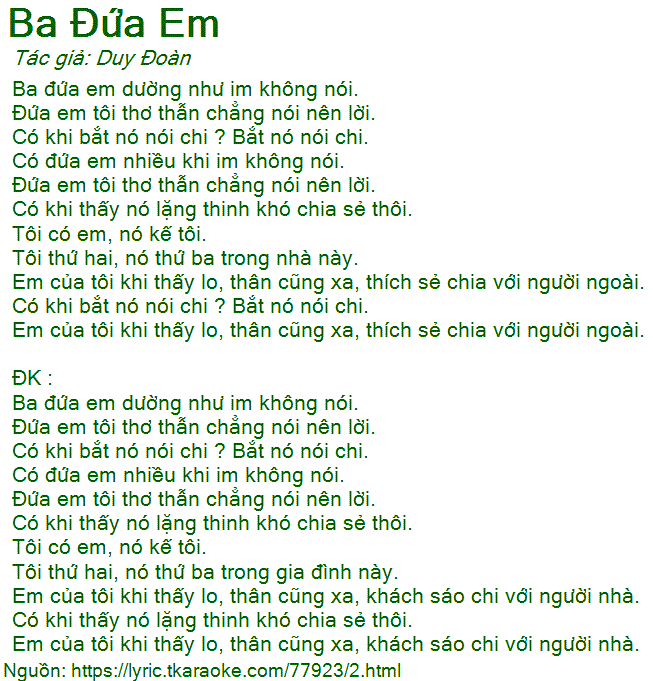 Em của tôi khi thấy lo, thân cũng xa, thích sẻ chia với người ngoài.