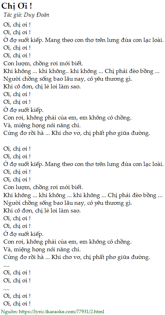 Khi không........khi không........khi không........ Chị phải đèo bồng........
