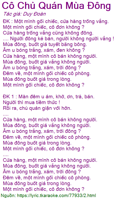 ........! ĐK : Một mình gối chiếc, cửa hàng trống vắng.