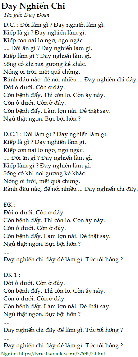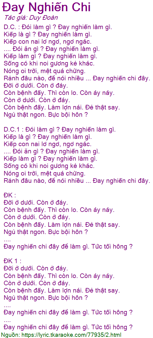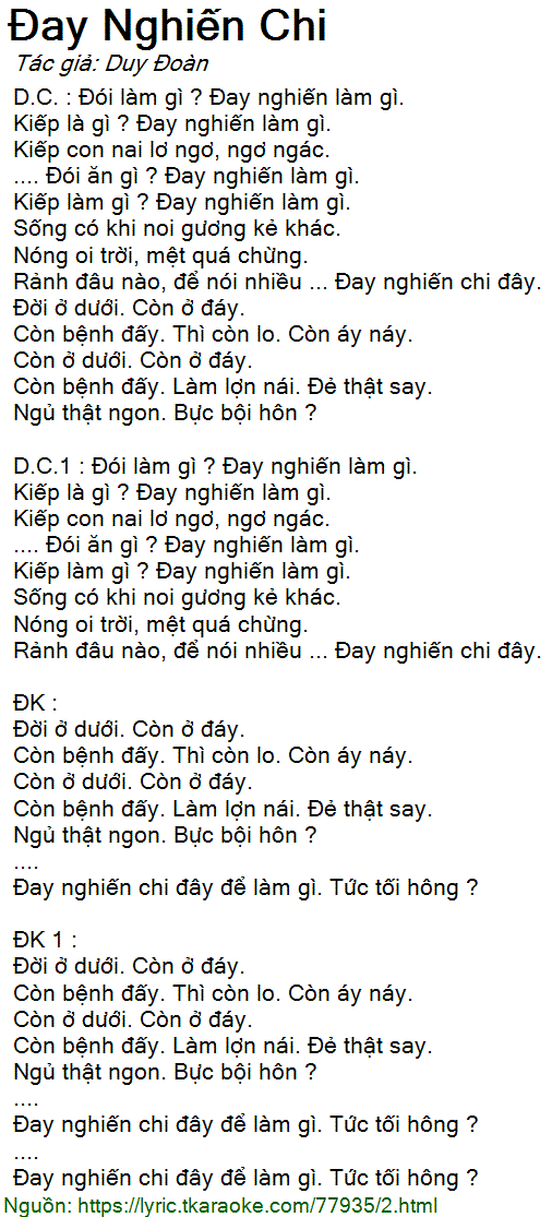 D.C. : Đói làm gì ? Đay nghiến làm gì.