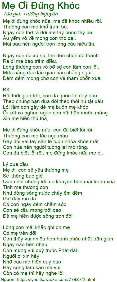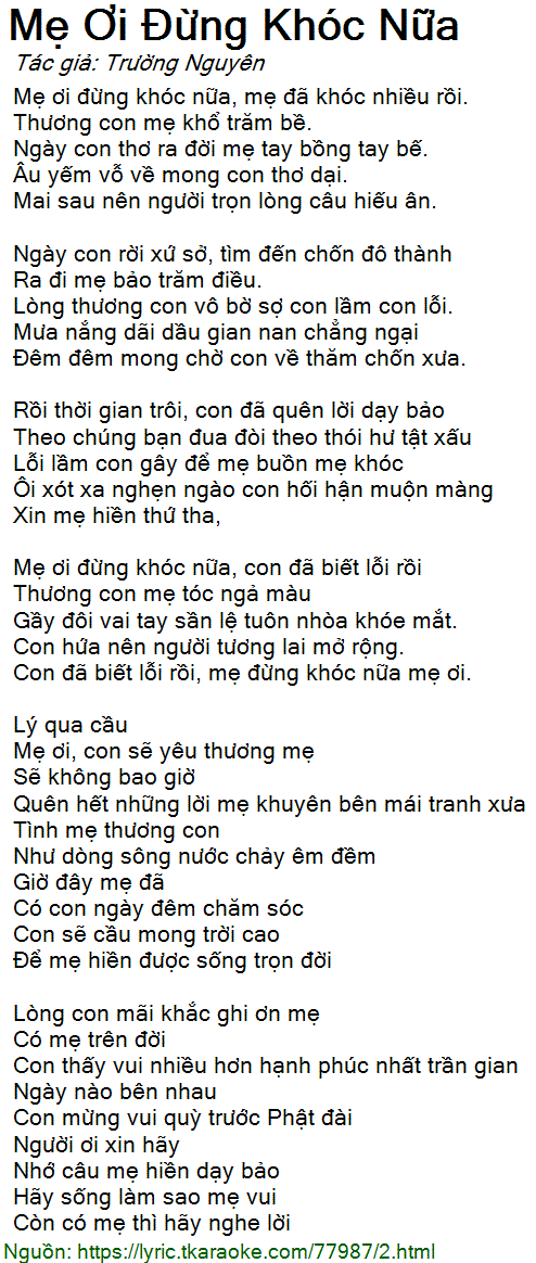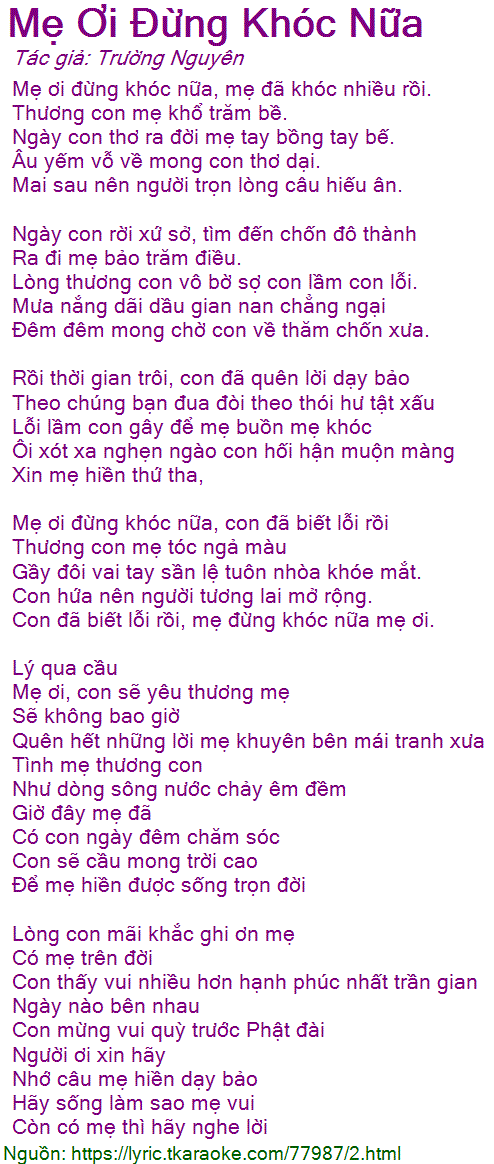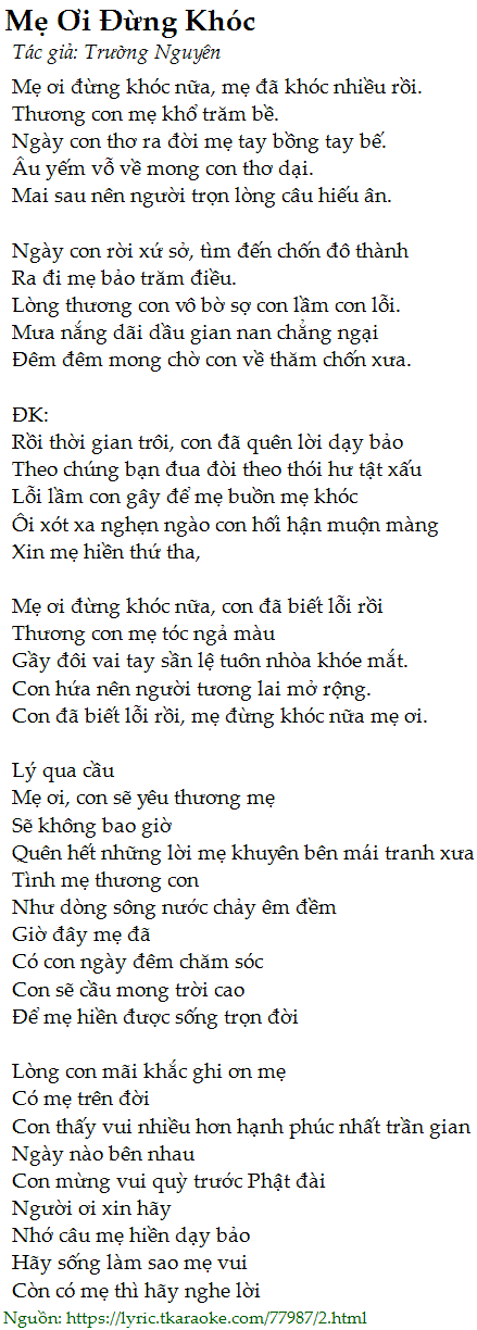 Mẹ ơi đừng khóc nữa, mẹ đã khóc nhiều rồi.