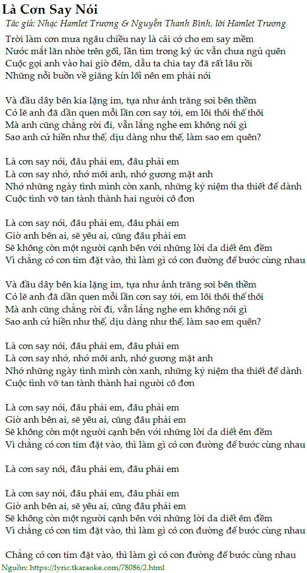 Là cơn say nhớ, nhớ môi anh, nhớ gương mặt anh