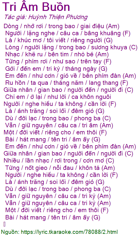 Vẫn / giữ nguyên / câu ca / tri âm (Am)