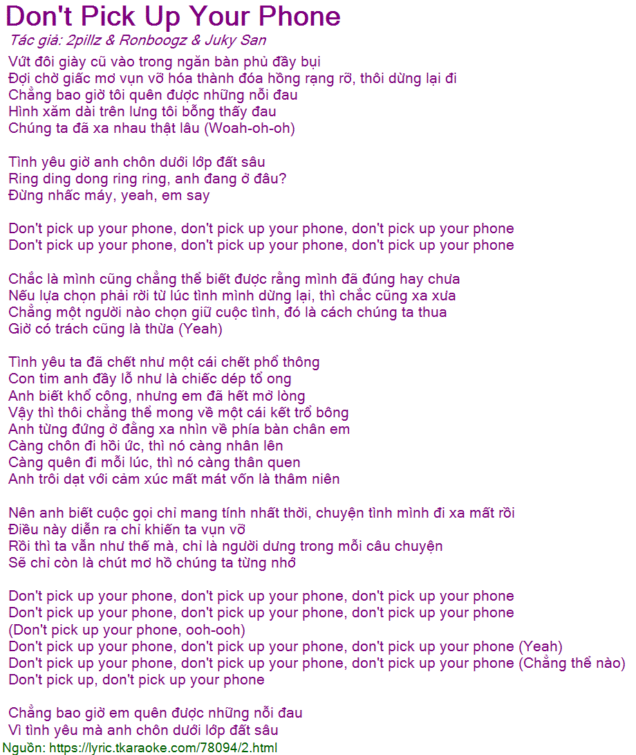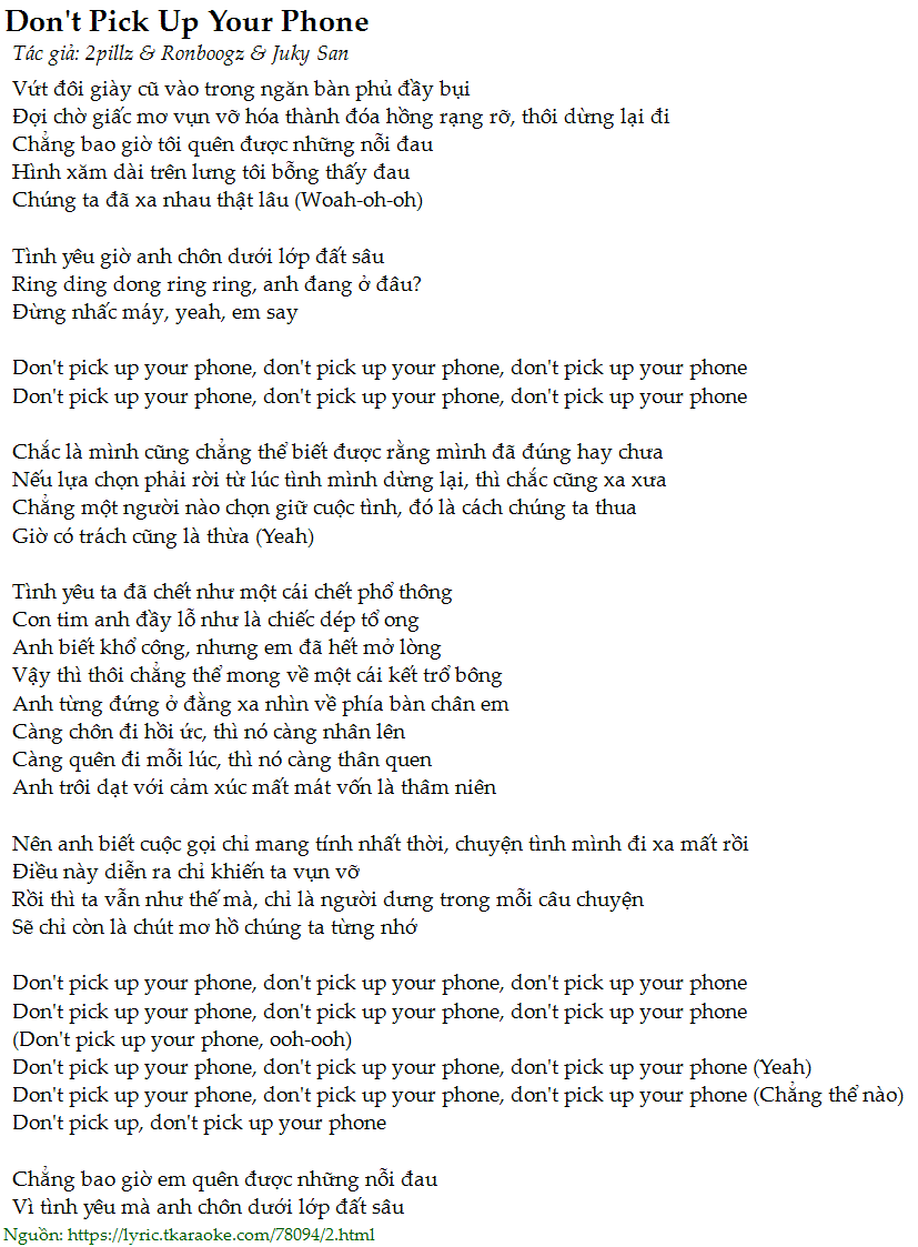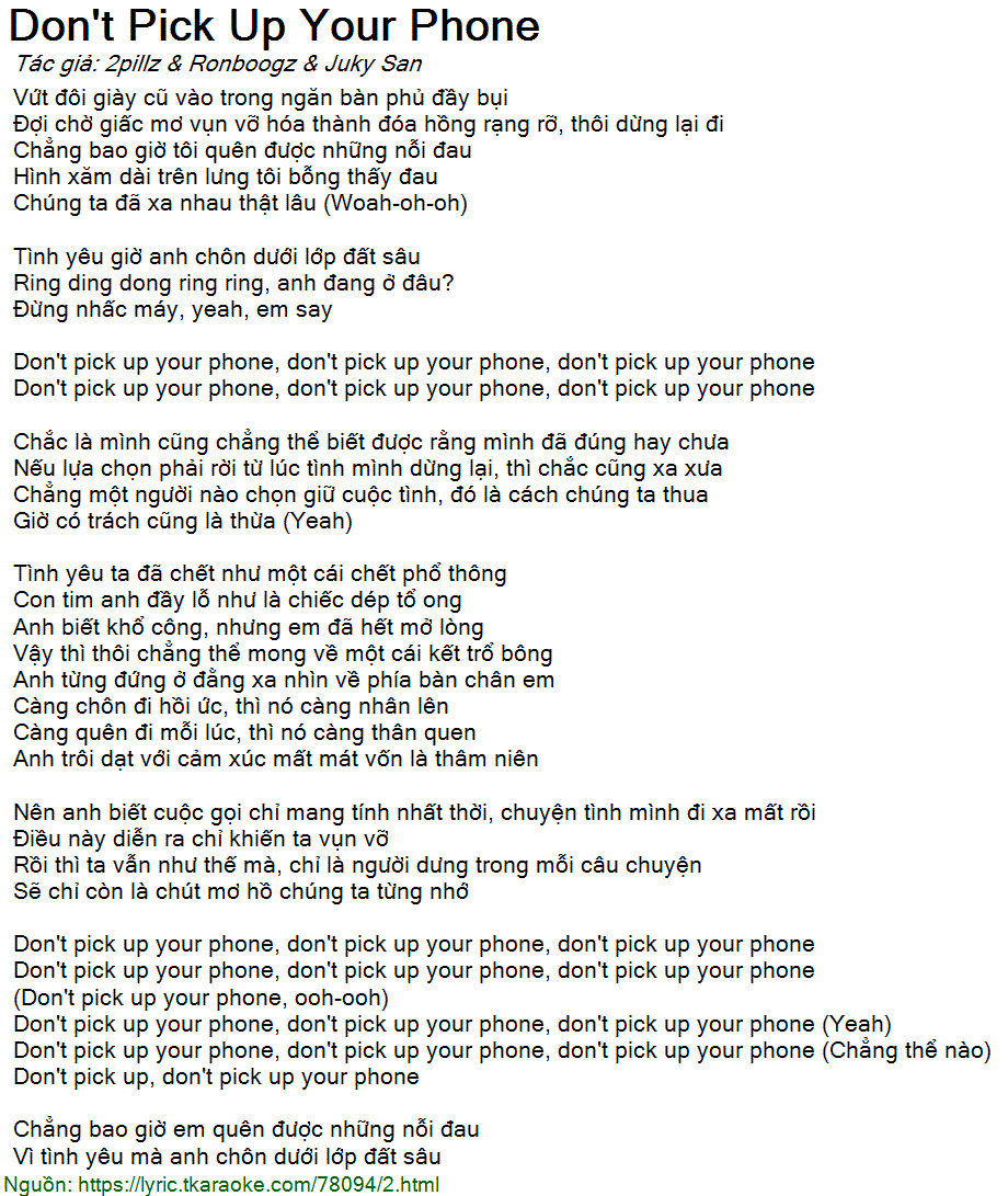 Don't pick up your phone, don't pick up your phone, don't pick up your phone (Chẳng thể nào)