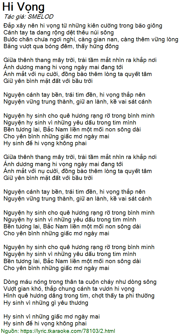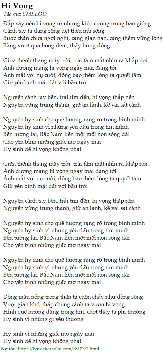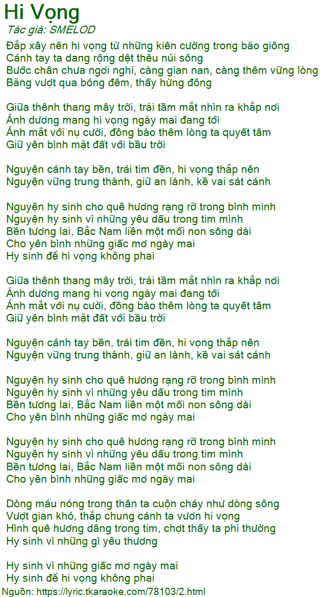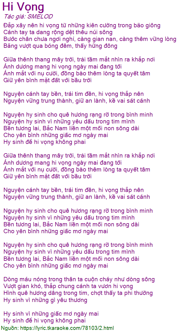 Nguyện cánh tay bền, trái tim đền, hi vọng thắp nên