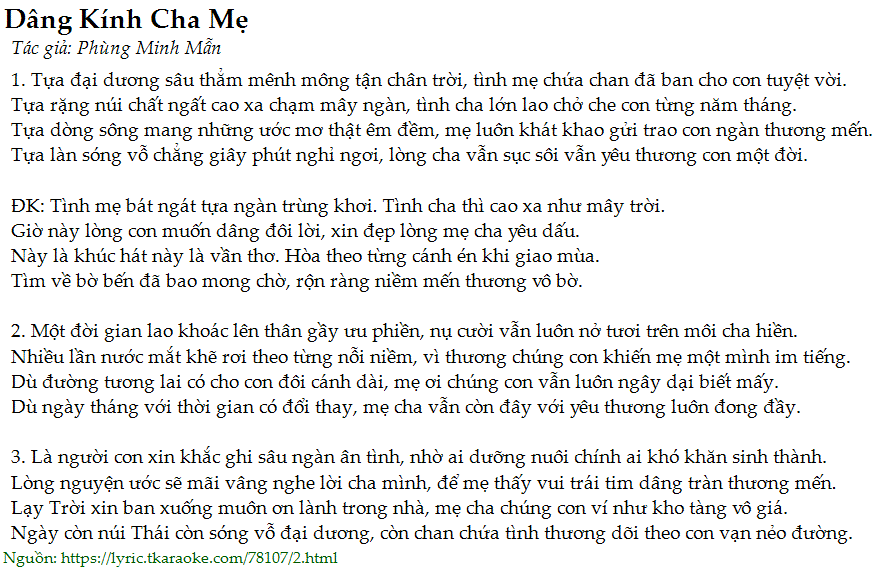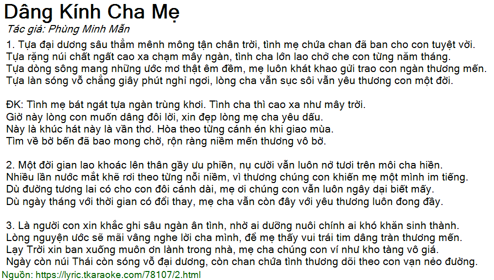 3. Là người con xin khắc ghi sâu ngàn ân tình, nhờ ai dưỡng nuôi chính ai khó khăn sinh thành.