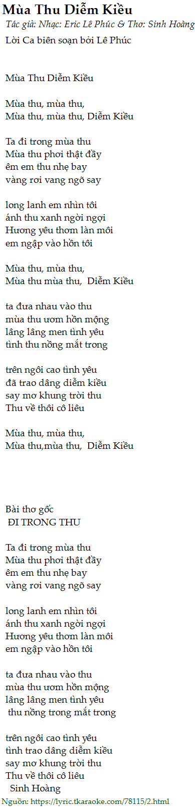 Mùa thu,mùa thu,  Diễm Kiều
