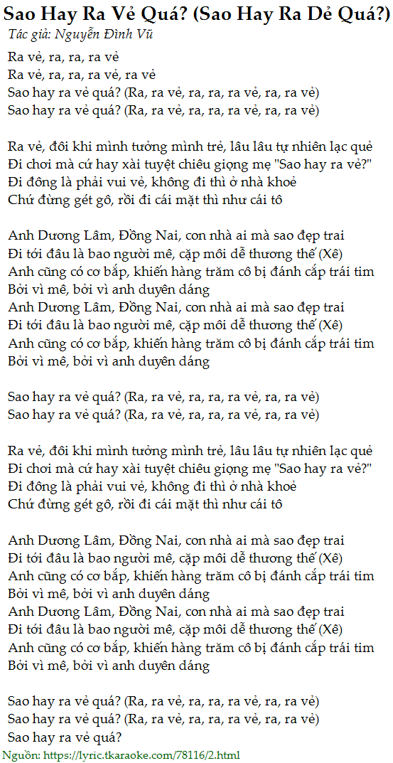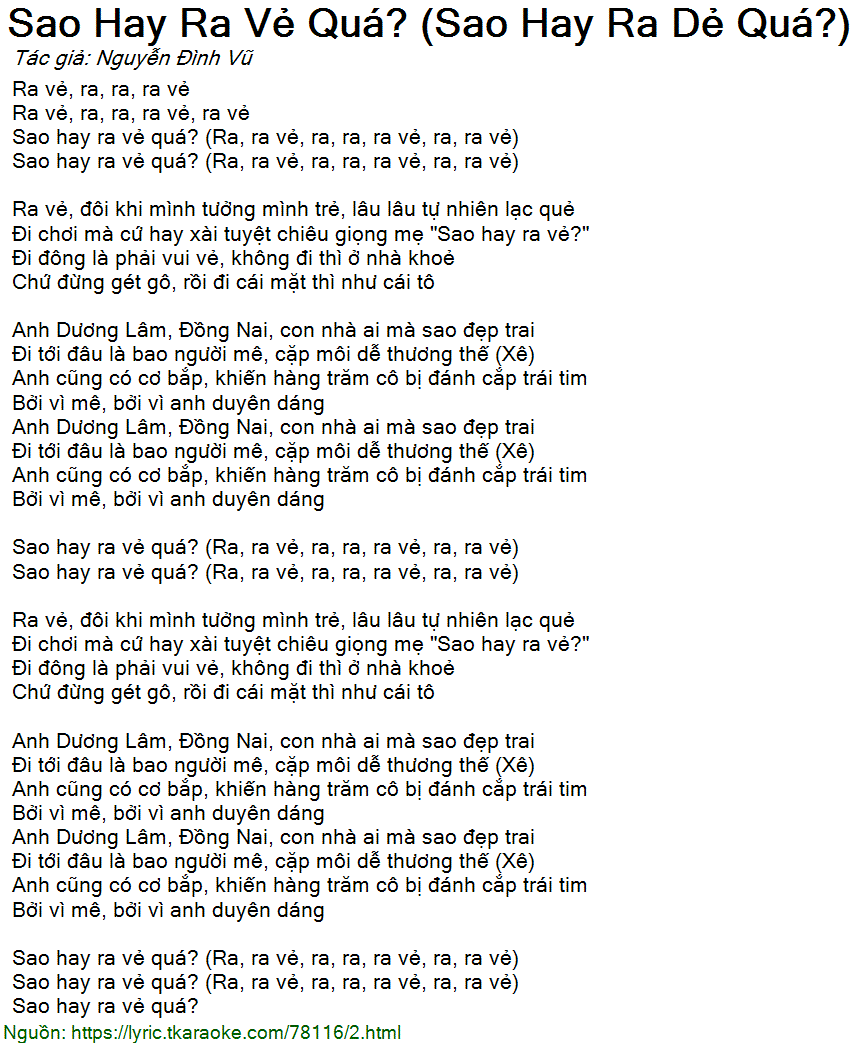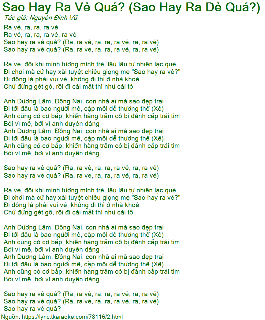 Sao hay ra vẻ quá? (Ra, ra vẻ, ra, ra, ra vẻ, ra, ra vẻ)