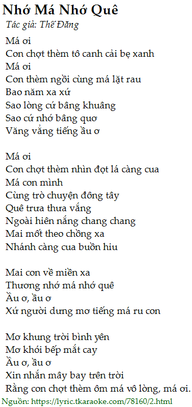 Rằng con chợt thèm ôm má vô lòng, má ơi.