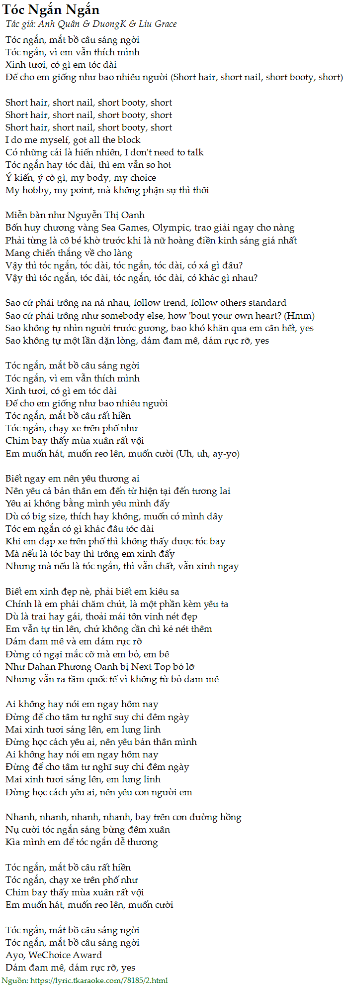 Để cho em giống như bao nhiêu người (Short hair, short nail, short booty, short)