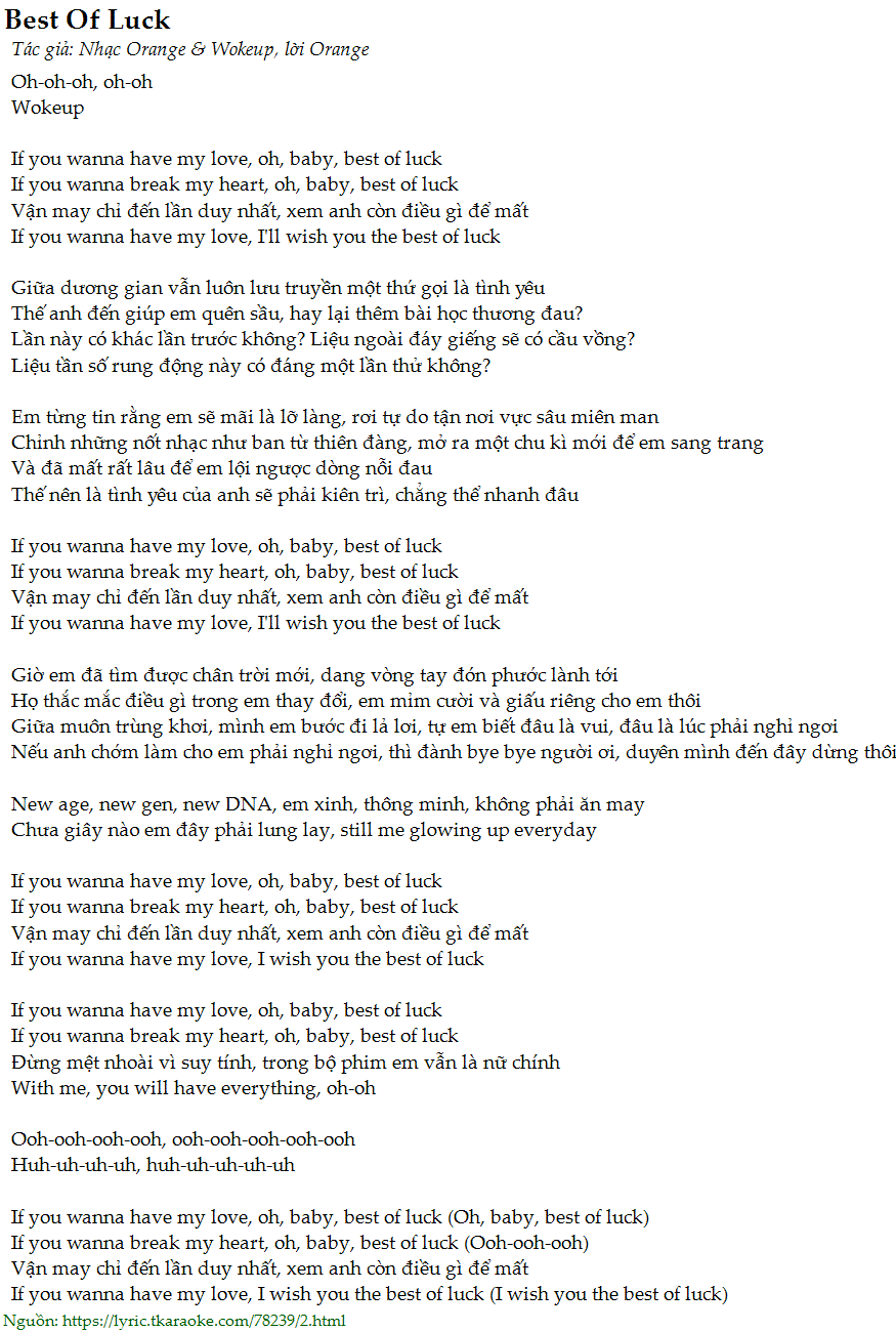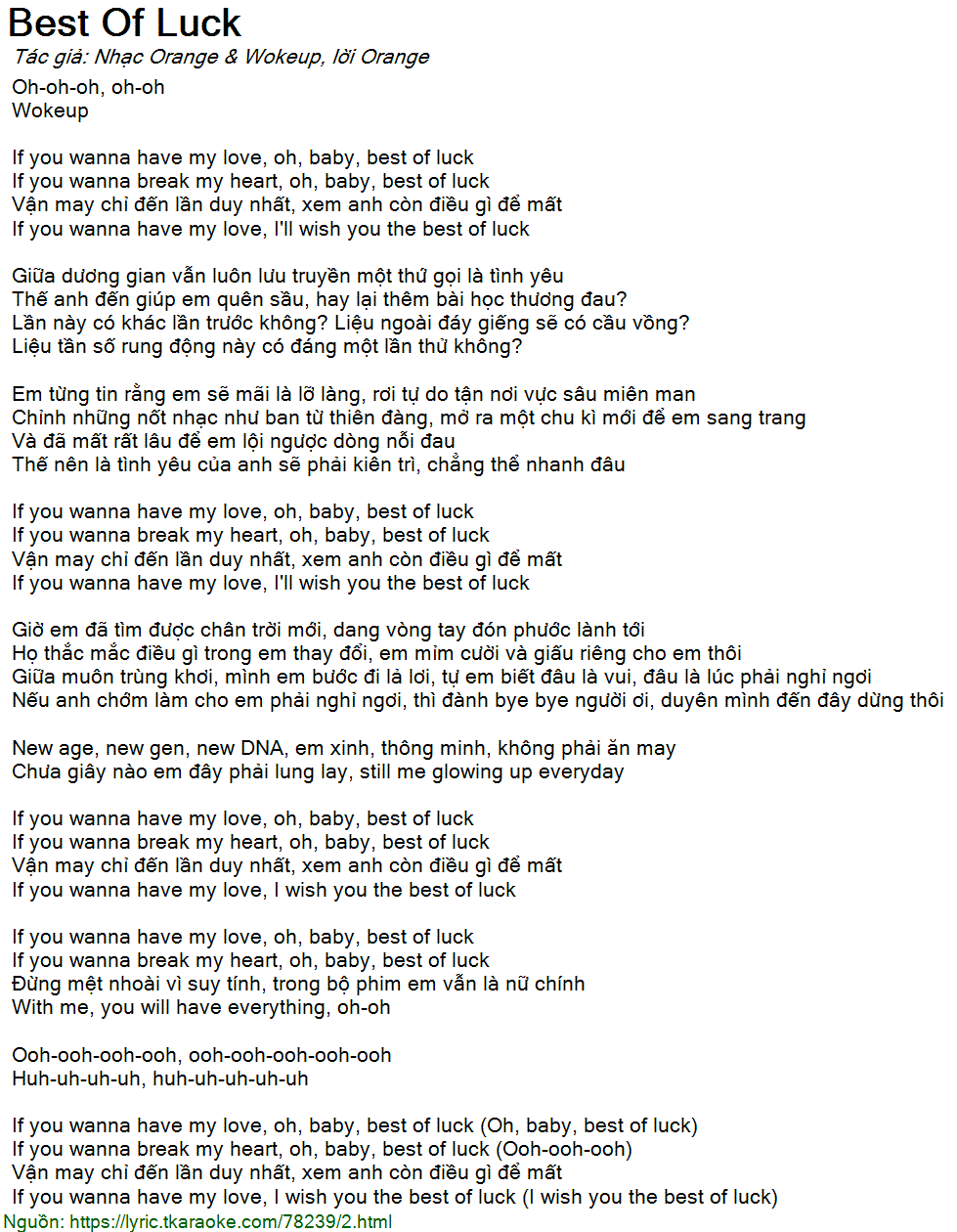 If you wanna have my love, oh, baby, best of luck (Oh, baby, best of luck)