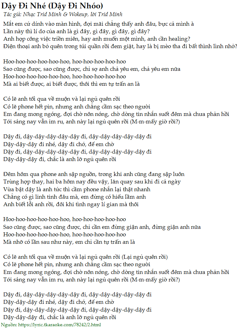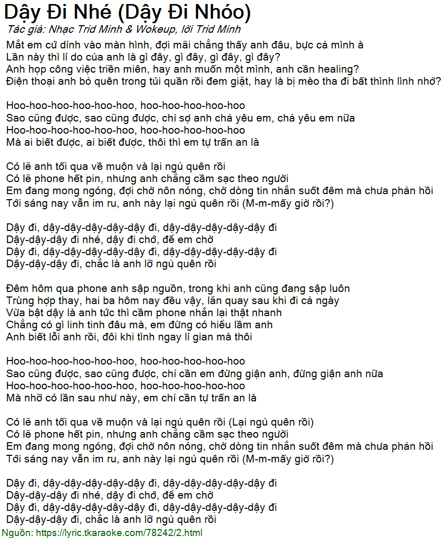 Dậy-dậy-dậy đi nhé, dậy đi chớ, để em chờ