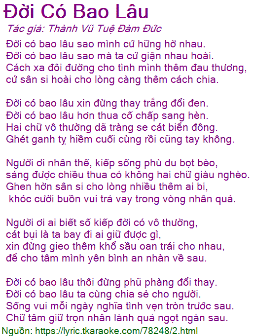 Đời có bao lâu sao mà ta cứ giận nhau hoài.