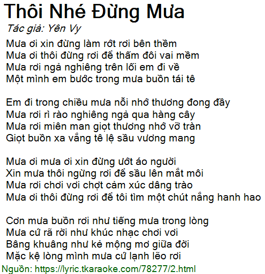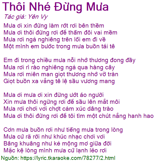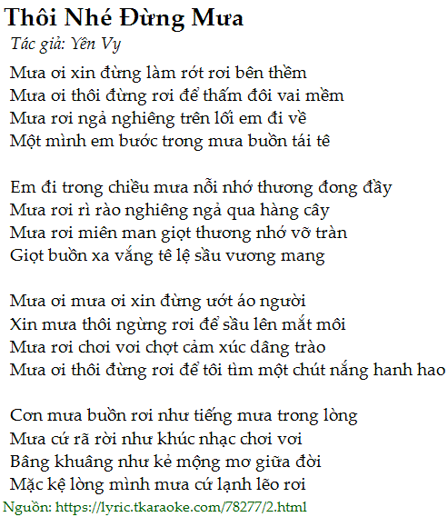 Mưa ơi thôi đừng rơi để thấm đôi vai mềm