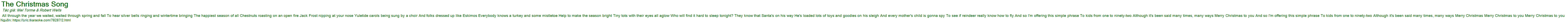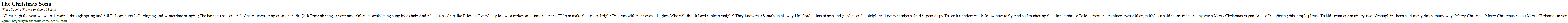 All through the year we waited, waited through spring and fall To hear silver bells ringing and wintertime bringing The happiest season of all Chestnuts roasting on an open fire Jack Frost nipping at your nose Yuletide carols being sung by a choir And folks dressed up like Eskimos Everybody knows a turkey and some mistletoe Help to make the season bright Tiny tots with their eyes all aglow Who will find it hard to sleep tonight? They know that Santa's on his way He's loaded lots of toys and goodies on his sleigh And every mother's child is gonna spy To see if reindeer really know how to fly And so I'm offering this simple phrase To kids from one to ninety-two Although it's been said many times, many ways Merry Christmas to you And so I'm offering this simple phrase To kids from one to ninety-two Although it's been said many times, many ways Merry Christmas Merry Christmas to you Merry Christmas to you