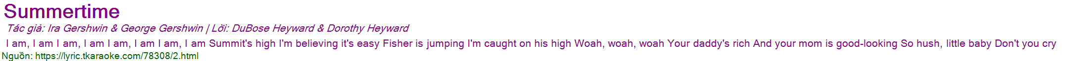 George Gershwin | Lời: DuBose Heyward
