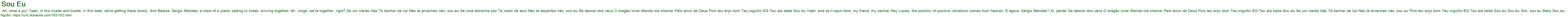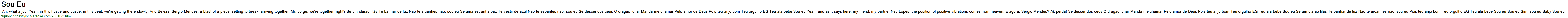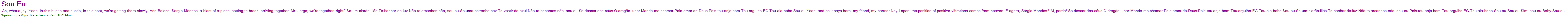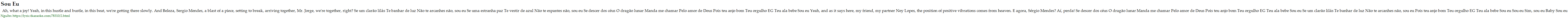 Ah, what a joy! Yeah, in this hustle and bustle, in this beat, we're getting there slowly. And Beleza, Sergio Mendes, a blast of a piece, setting to break, arriving together, Mr. Jorge, we're together, right? Se um clarão lilás Te banhar de luz Não te arcanhes não, sou eu Se uma estranha paz Te vestir de azul Não te espantes não, sou eu Se descer dos céus O dragão lunar Manda me chamar Pelo amor de Deus Pois teu anjo bom Teu orgulho EG Teu ala bebe Sou eu Yeah, and as it says here, my friend, my partner Ney Lopes, the position of positive vibrations comes from heaven. E agora, Sérgio Mendes? Aí, perda! Se descer dos céus O dragão lunar Manda me chamar Pelo amor de Deus Pois teu anjo bom Teu orgulho EG Teu ala bebe Sou eu Se um clarão lilás Te banhar de luz Não te arcanhes não, sou eu Pois teu anjo bom Teu orgulho EG Teu ala bebe Sou eu Sou eu Sim, sou eu Baby Sou eu
