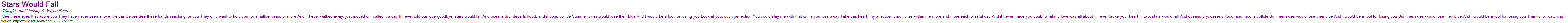 See these eyes that adore you They have never seen a love like this before See these hands reaching for you They only want to hold you for a million years or more And if I ever walked away, just moved on, called it a day If I ever told our love goodbye, stars would fall And oceans dry, deserts flood, and moons collide Summer skies would lose their blue And I would be a fool for losing you Look at you, such perfection You could slay me with that smile you toss away Take this heart, my affection It multiplies within me more and more each blissful day And if I ever made you doubt what my love was all about If I ever broke your heart in two, stars would fall And oceans dry, deserts flood, and moons collide Summer skies would lose their blue And I would be a fool for losing you Summer skies would lose their blue And I would be a fool for losing you Thanks for watching!