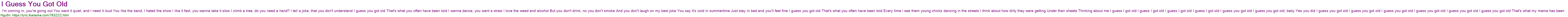 I'm coming in, you're going out You want it quiet, and I need it loud You like the band, I hated the show I like it fast, you wanna take it slow I climb a tree, do you need a hand? I tell a joke, that you don't understand I guess you got old That's what you often have been told I wanna dance, you want a straw I love the weed and alcohol But you don't drink, no you don't smoke And you don't laugh on my best joke You say it's cold in summertime Just stay in bed and you'll feel fine I guess you got old That's what you often have been told Every time I see them young chicks dancing in the streets I think about how dirty they were getting Under their sheets Thinking about me I guess I got old I guess I got old I guess I got old I guess I got old I guess you got old I guess you got old, baby Yes you did I guess you got old I guess you got old I guess you got old I guess you got old I guess you got old I guess you got old That's what my mama has been