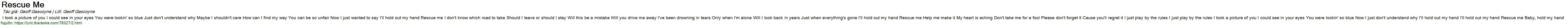 I took a picture of you I could see in your eyes You were lookin' so blue Just don't understand why Maybe I shouldn't care How can I find my way You can be so unfair Now I just wanted to say I'll hold out my hand Rescue me I don't know which road to take Should I leave or should I stay Will this be a mistake Will you drive me away I've been drowning in tears Only when I'm alone Will I look back in years Just when everything's gone I'll hold out my hand Rescue me Help me make it My heart is aching Don't take me for a fool Please don't forget it Cause you'll regret it I just play by the rules I just play by the rules I took a picture of you I could see in your eyes You were lookin' so blue Now I just don't understand why I'll hold out my hand I'll hold out my hand Rescue me Baby, hold my hand