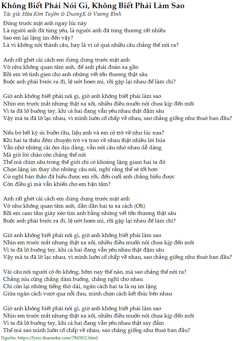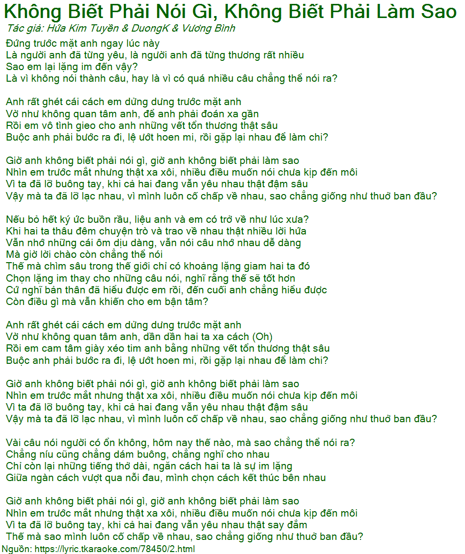 Giờ em không biết phải nói gì, giờ em không biết phải làm sao