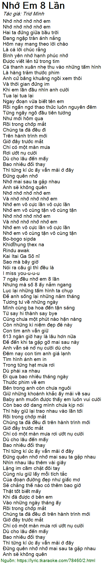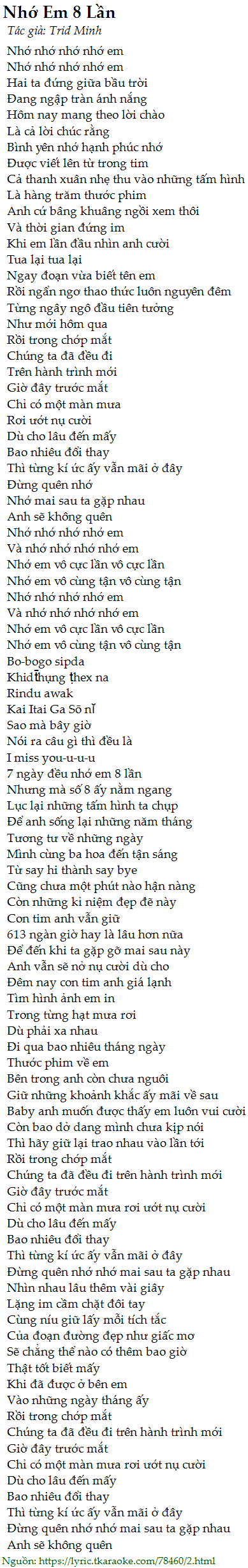 Và nhớ nhớ nhớ nhớ em