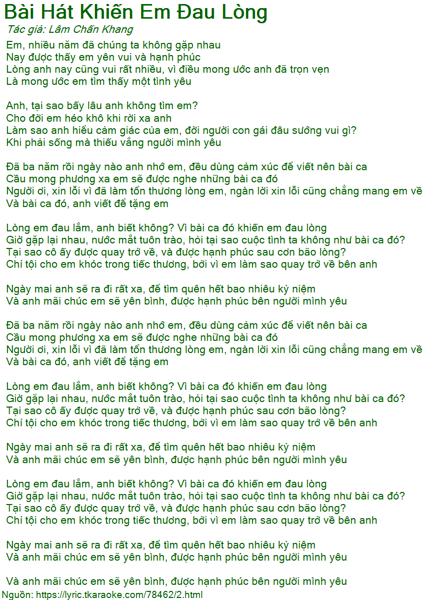 Lòng em đau lắm, anh biết không? Vì bài ca đó khiến em đau lòng