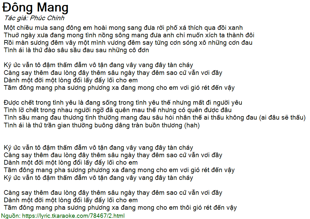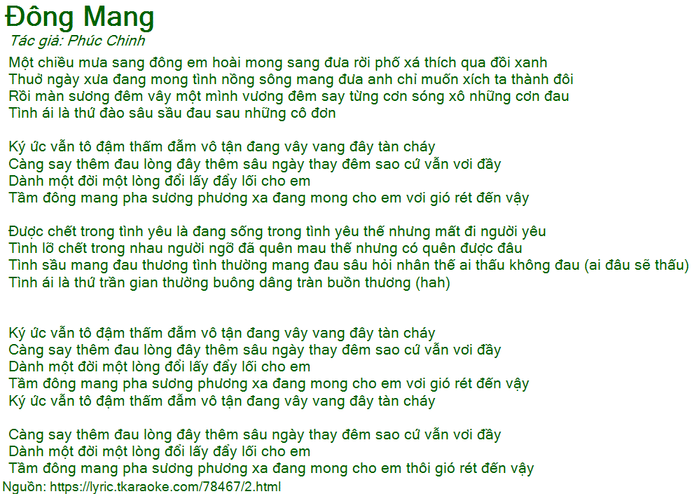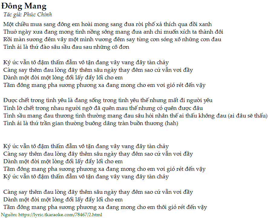 Tầm đông mang pha sương phương xa đang mong cho em vơi gió rét đến vậy