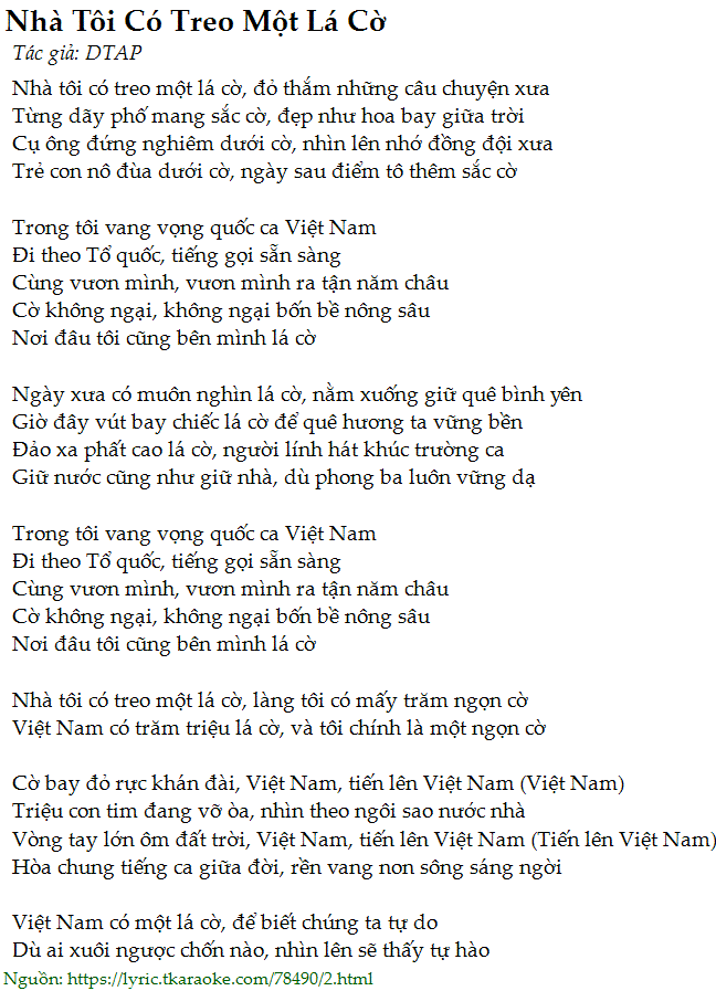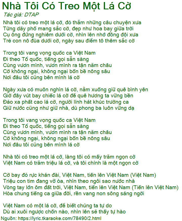 Việt Nam có một lá cờ, để biết chúng ta tự do