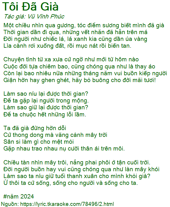 Thời gian dần đi qua, những vết nhăn đã hằn trên má