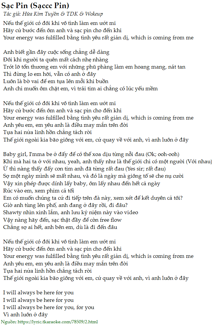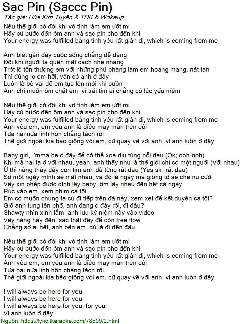 Your energy was fulfilled bằng tình yêu rất giản dị, which is coming from me